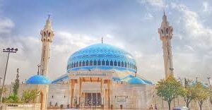 King Hussein Mosque is a mosque located in Amman, known for its beautiful architectural design. It is one of Jordan’s major religious landmarks, built in honor of King Hussein bin Talal. The mosque is distinguished by its tall minaret and large dome, and it is considered a sacred place for visitors to explore.