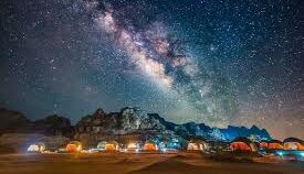 Wadi Rum is a desert valley located in southern Jordan, known for its stunning natural beauty and breathtaking mountain views. It is also called the “Valley of the Moon” due to its unique landscape that resembles the surface of the moon. Wadi Rum features red sand dunes and massive rock formations, making it an ideal location for desert tours and camping.